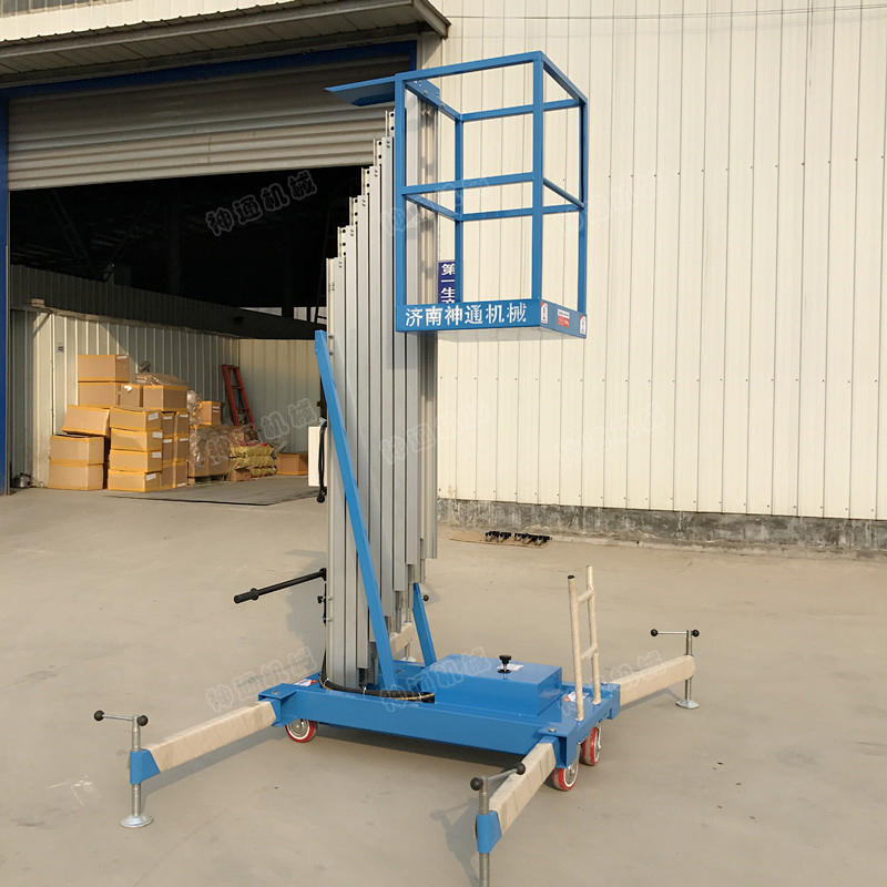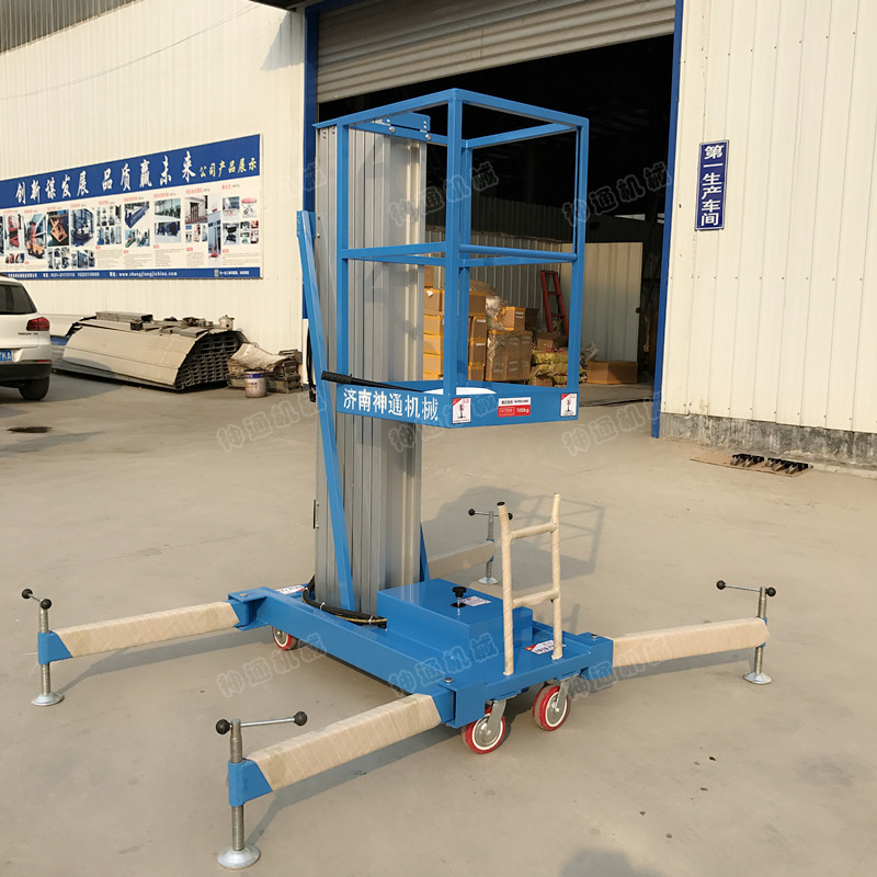 產(chǎn)品介紹:鋁合金式液壓升降平臺(tái)采用高強(qiáng)度優(yōu)質(zhì)鋁合金材料,具有造型美觀、體積小、重量輕、運(yùn)轉(zhuǎn)靈活,推行方便。升降平穩(wěn)、安全可靠等優(yōu)點(diǎn)。雙柱鋁合金式升降機(jī)能穿越一般門(mén)廳,可隨意進(jìn)出電梯,能在極小的空間內(nèi)發(fā)揮最高的舉升能力。使雙人高空作業(yè)變得輕而易舉。且耗電少、無(wú)污染、工作時(shí)不傷地面,可用于貼墻作業(yè)及探出作業(yè)。鋁合金升降平臺(tái)分為單柱、雙柱、三柱和四柱等。
